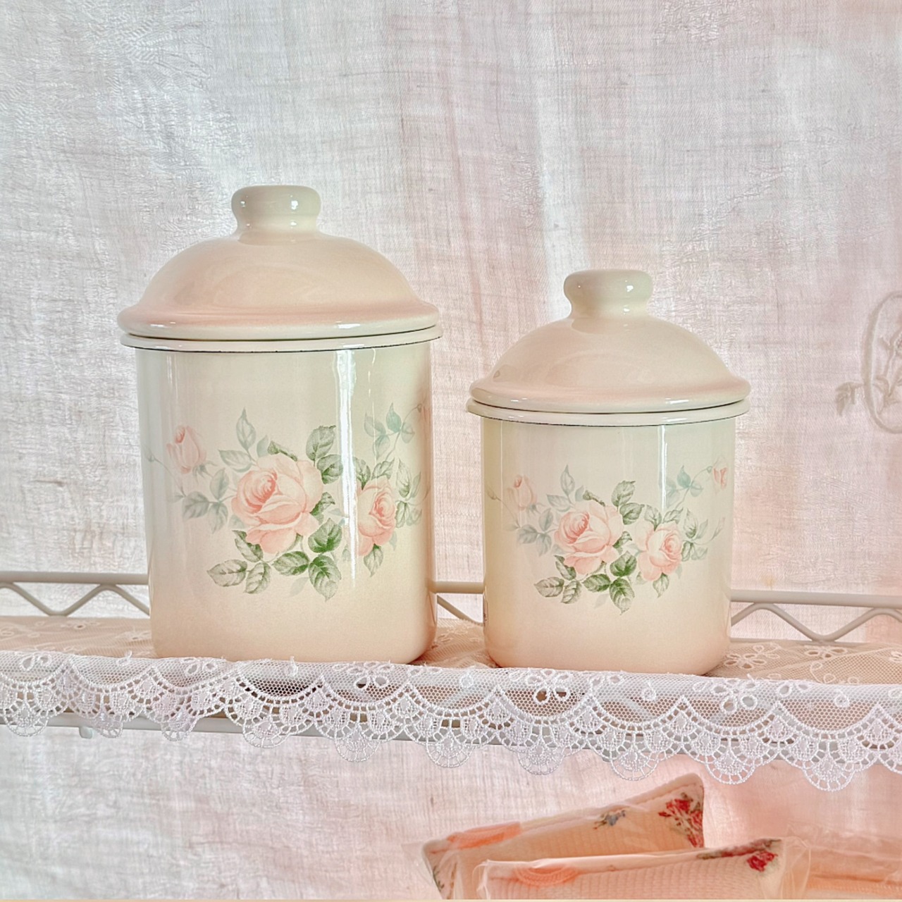 繊細なローズ柄とやさしい色使いが魅力の、Plan・de・Paris ホーローキャニスター♡