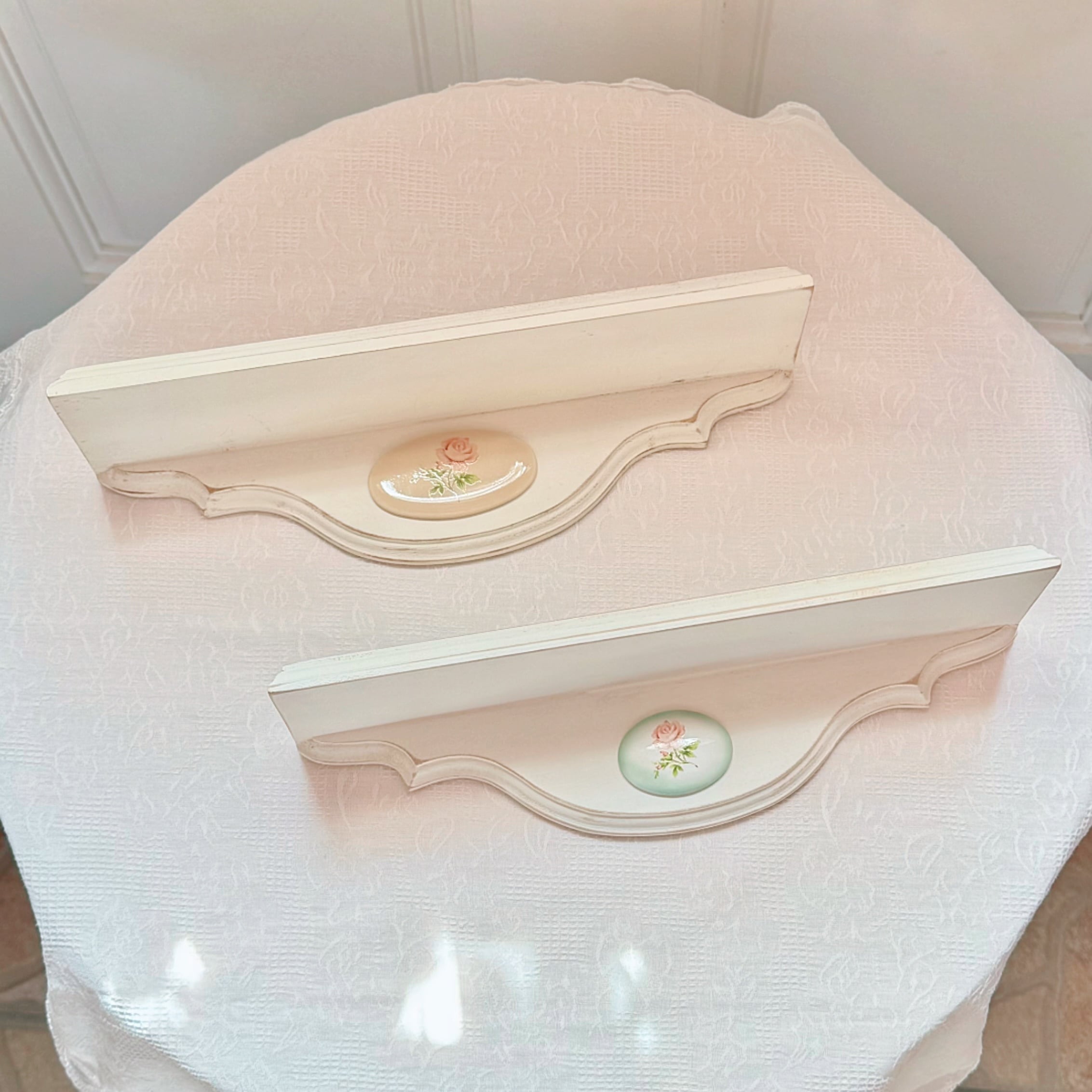 【プラン・ド・パリ 木製ウォールシェルフ S ホワイト ジュリアン(グリーン) ローズ 1点】