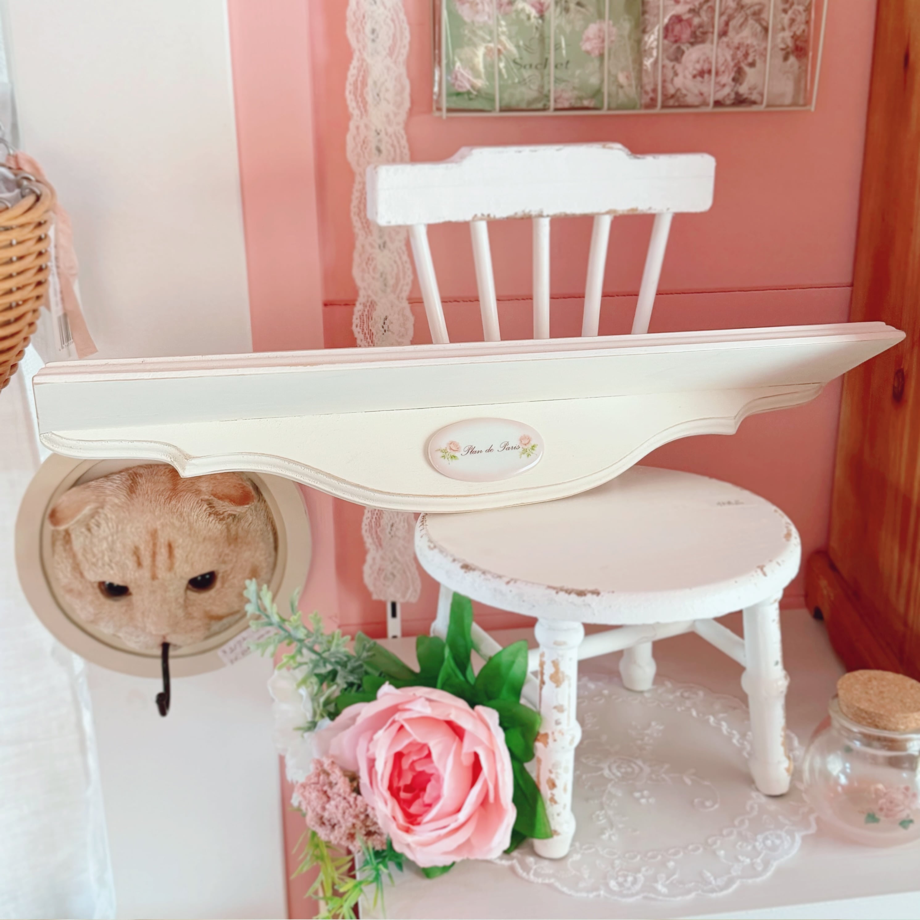 お気に入りの雑貨や小物を飾るのにぴったりの、優しい雰囲気のフレンチシャビーなデザインです⟡.·