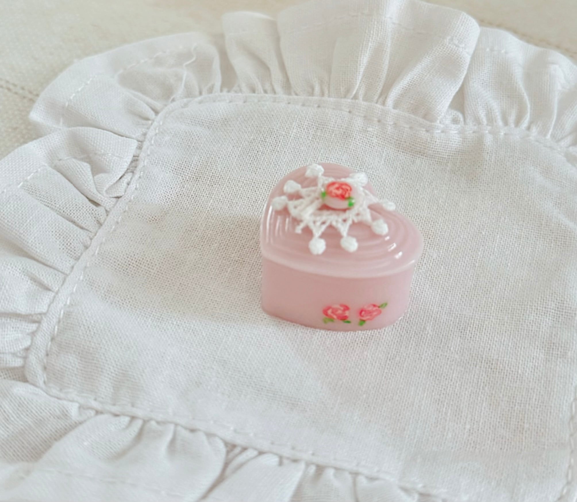 蓋はレースを付けてオシャレしました。蓋の取っ手と側面の小さな小さなローズは手描きです♡