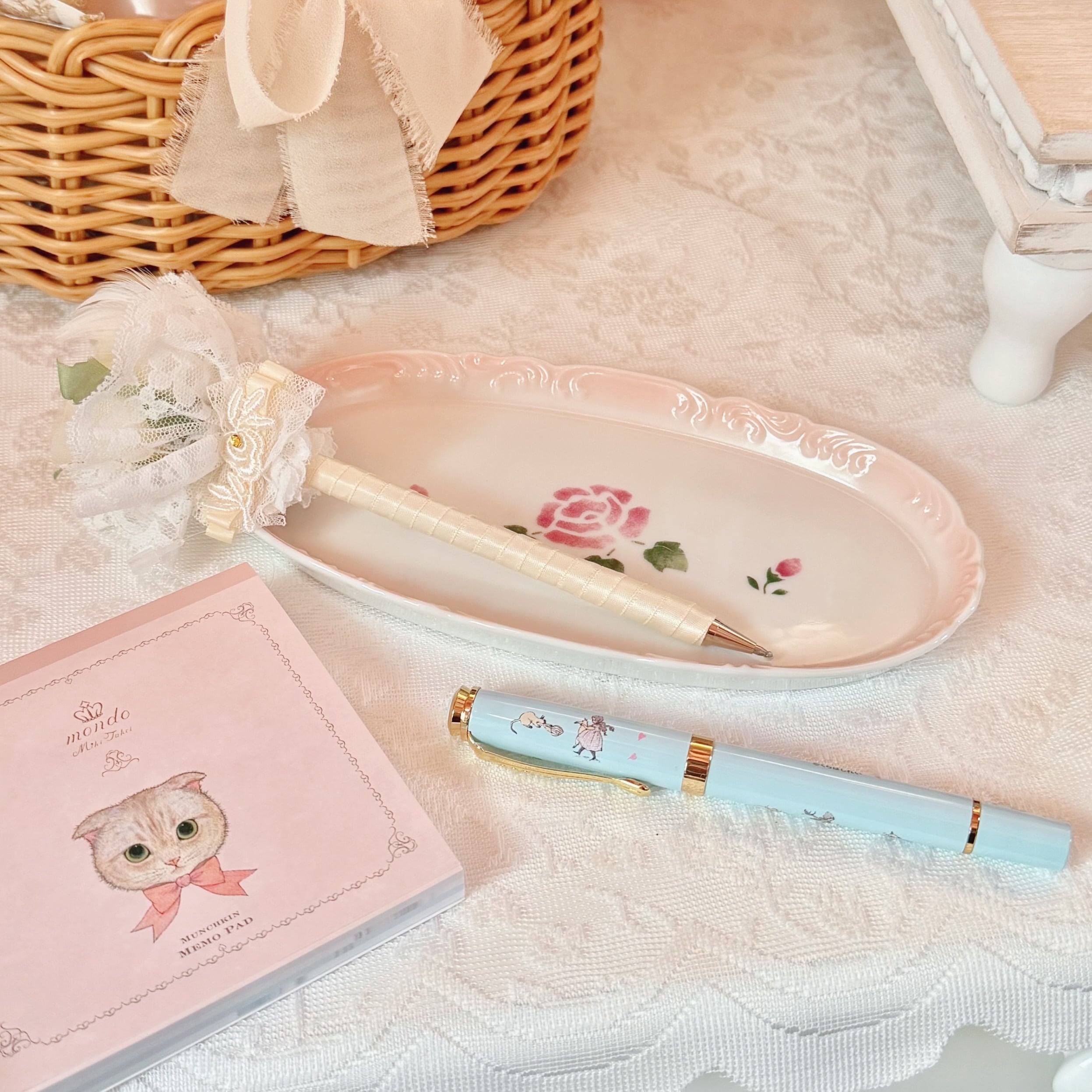 優しいピンクの吹きと、縁のデザインがお洒落なミニトレー♡