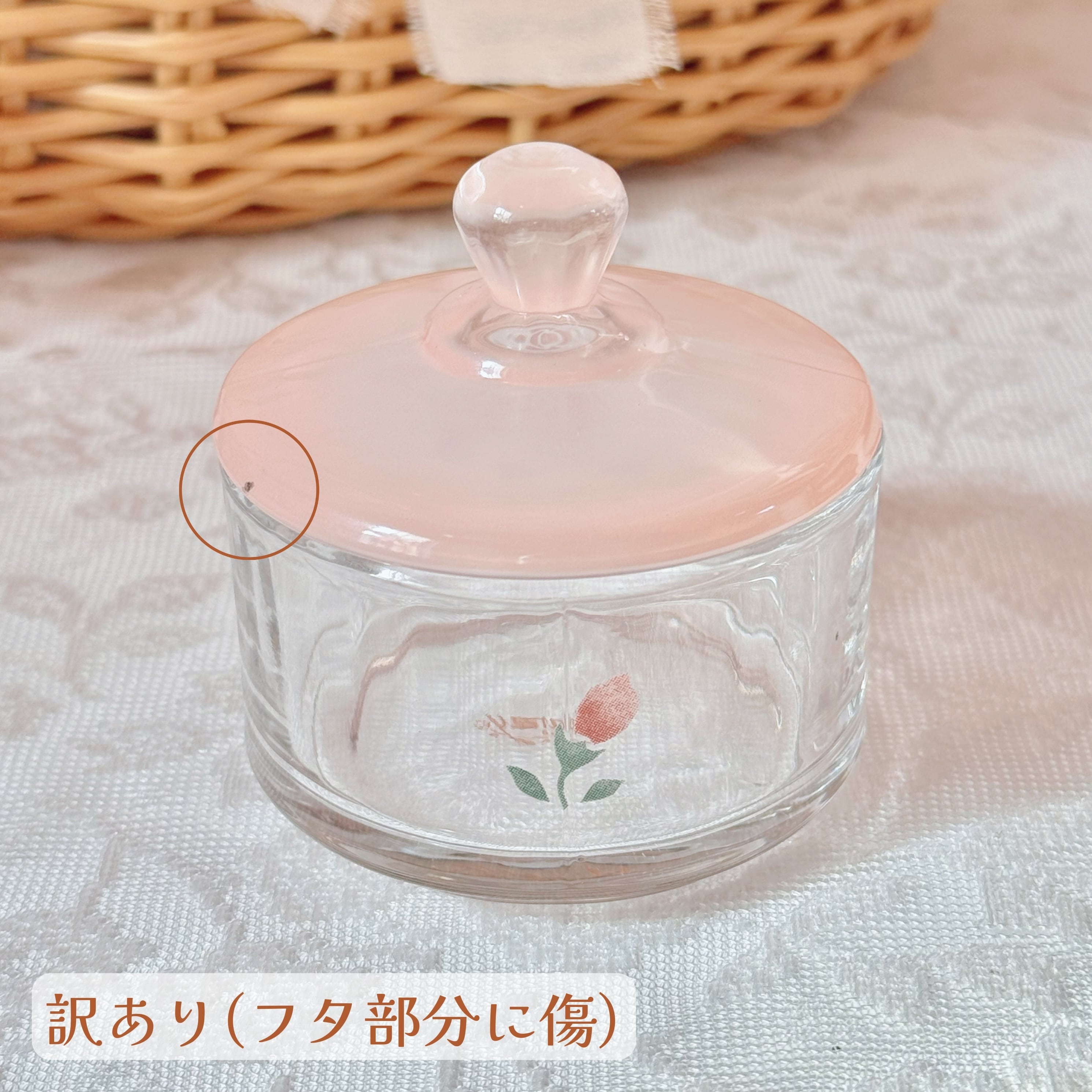 写真の〇印部分に、製造過程でできた小さな傷が見られます。