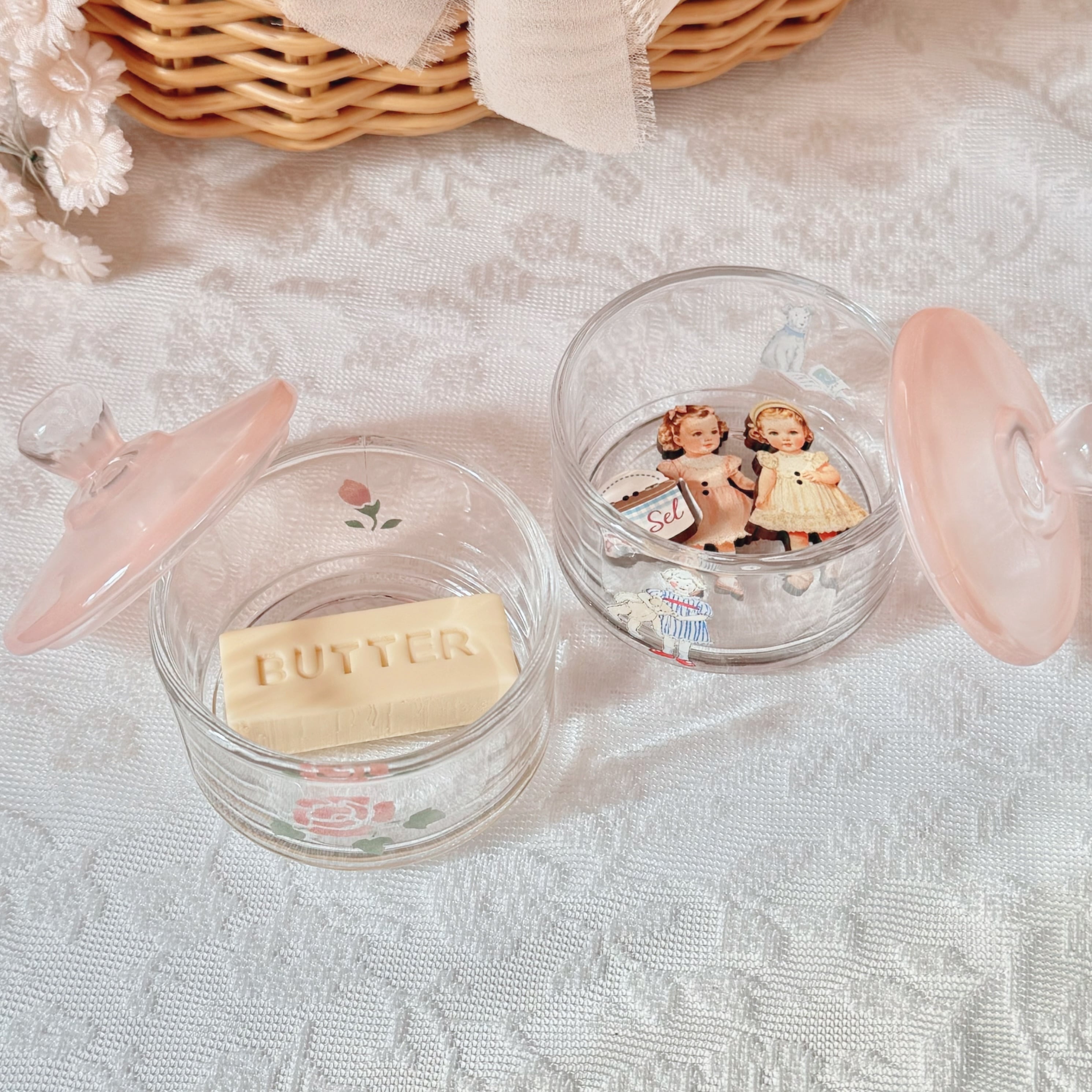 ガラス製で中身が見やすく、実用性とかわいさを兼ね備えたバターケースです⟡.·
